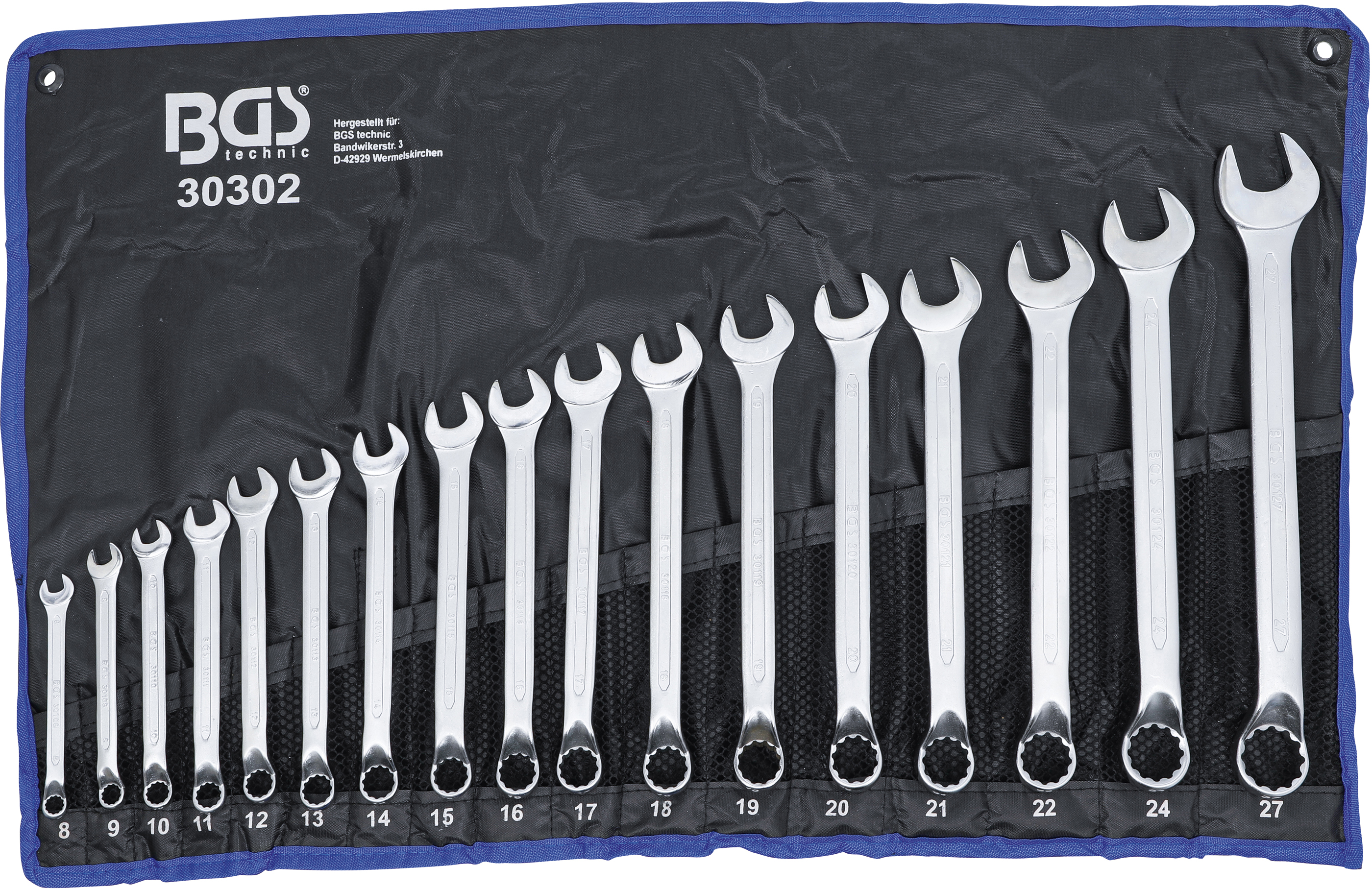 Produktinformationen "BGS 30302 Maul-Ringschlüssel-Satz | gekröpft | SW 8 - 27 mm | 17-tlg."