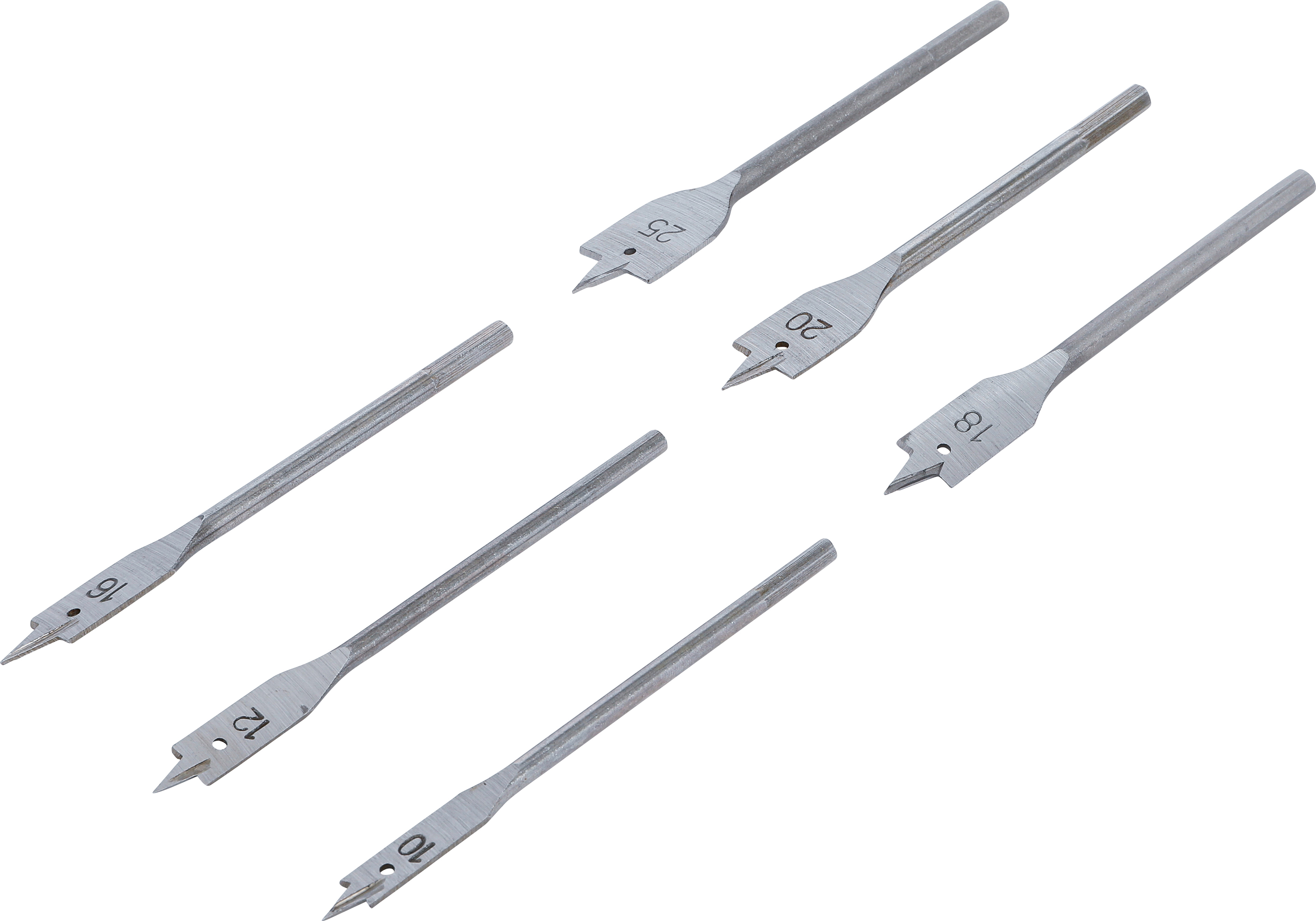Produktinformationen "BGS 50796 Flachfräsbohrer-Satz | 10 - 25 mm | 6-tlg."