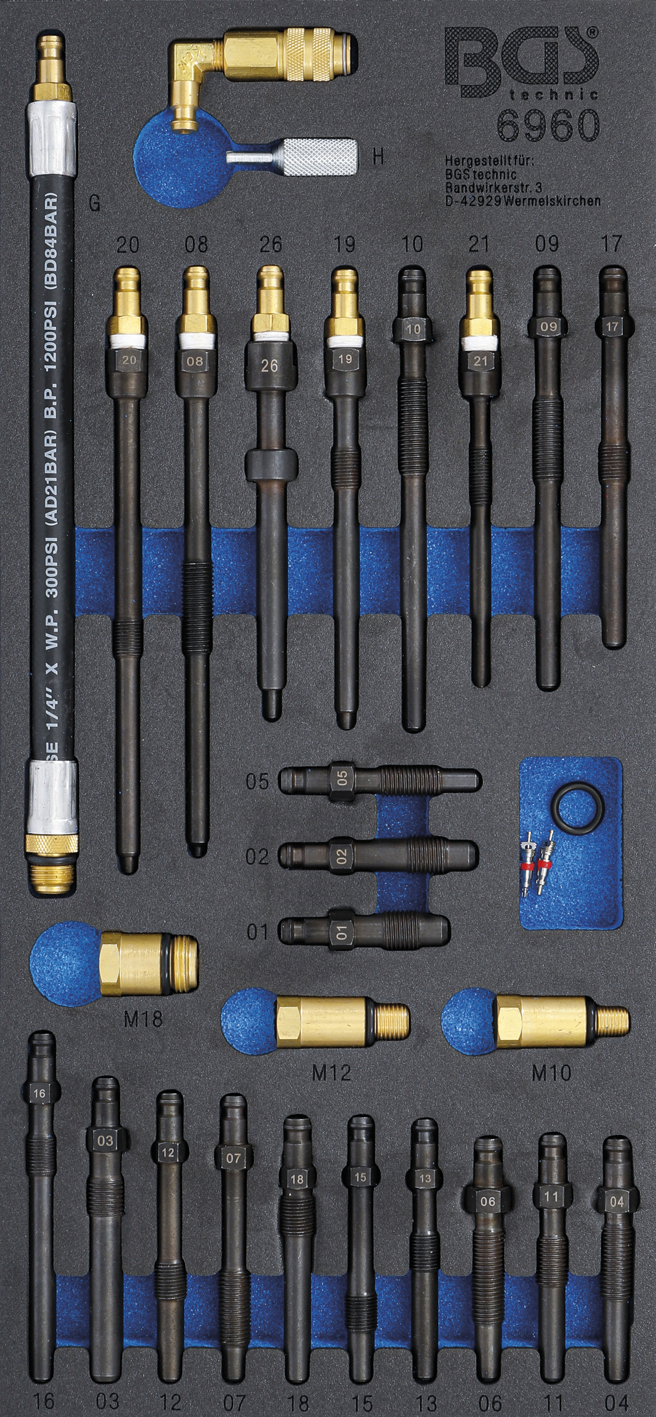 BGS 6960 Werkstattwageneinlage 1/3: Adapter-Satz für Kompressions- und Druckverlusttester | 30-tlg.