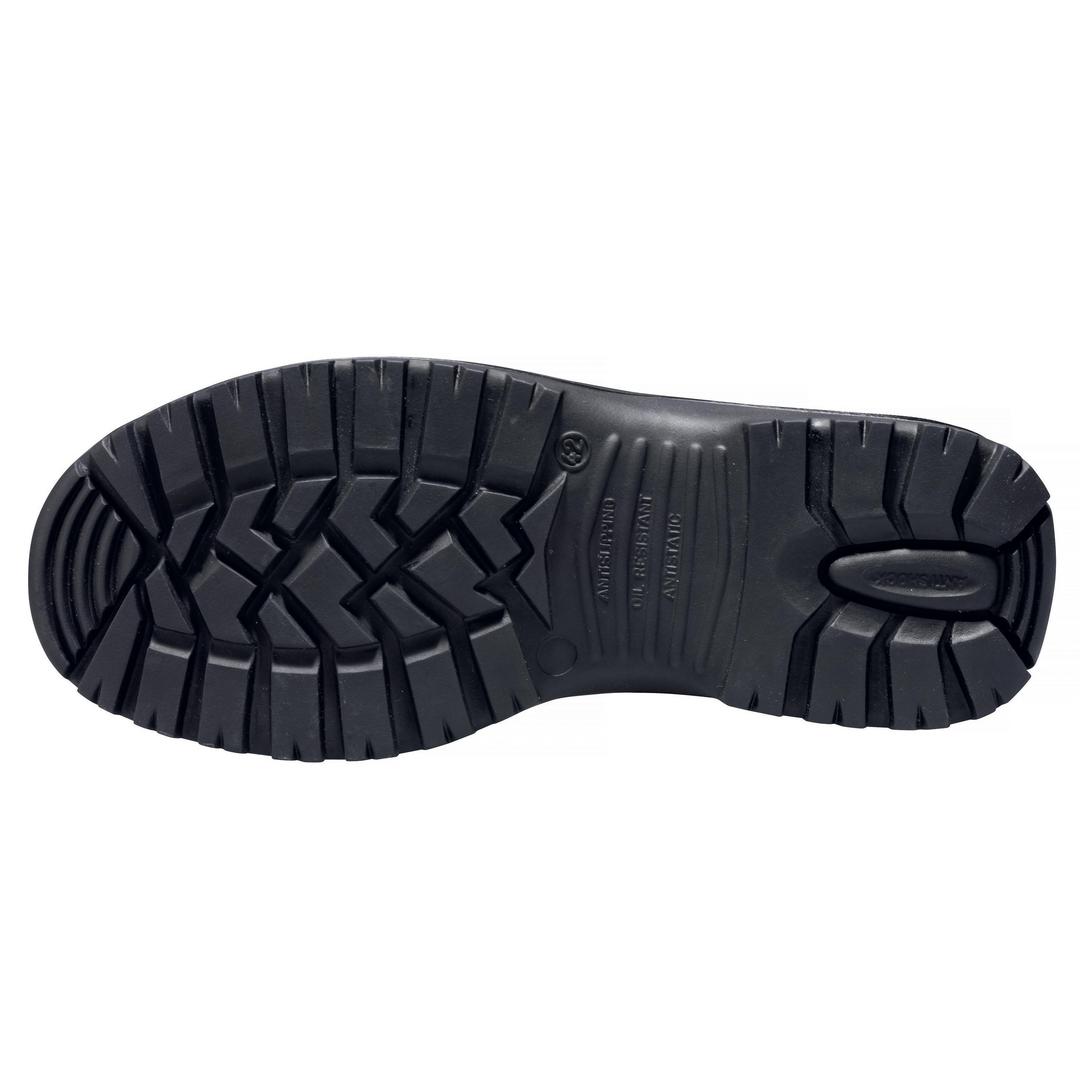 - Zweikomponenten-Sohle, bestehend aus schockabsorbierender PU-Zwischensohle und widerstandsfähiger und rutschfester Gummilaufsohle